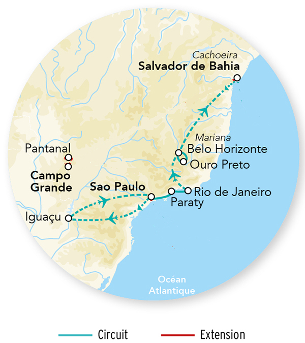 - Les vols intérieurs Iguaçu/Sao Paulo ou Rio - Rio de Janeiro/Belo Horizonte - Belo Horizonte/Salvador de Bahia - Salvador de Bahia/Sao Paulo sur vols réguliers LATAM ou autres compagnies (poids des bagages limité à 23 kg/pers.)