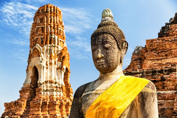 Départ pour la visite des ruines d’Ayutthaya avec ses principaux monuments. Le temple Wat Yai Chai Mongkol, construit à la fin du XVIe siècle pour marquer la victoire du roi Narusuan (adulé encore de nos jours) envers un prince birman dans un combat singulier. En plus du cloître entouré de ces 135 statues de Bouddhas, vous pourrez y admirer l’imposant chedi de 62 m. Visite du temple Wat Panan Choeng, classé sous patronage royal, abrite une statue de Bouddha assis de 19 m. de haut. (P.déj-Déj-Dîn).