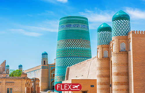 Dressée derrière ses murailles, les coupoles et les minarets, Khiva, cité vieille de vingt siècles et ancienne capitale du royaume de Khorezm, offre des couleurs de sable et de turquoise. On y découvre non seulement des monuments historiques mais surtout un ensemble architectural parfait qui n’a pas d’équivalent en Asie centrale. Un double anneau de murailles en pisé, datant du XIXe siècle, enserre les deux parties de la ville nommées Ditchan-kala, ville extérieure et Itchan-kala, ville intérieure. Visite guidée de la ville intérieure (classé au patrimoine mondial par l’UNESCO) : Visite de Kugna-Ark, Kournych-Khana, la tour Ak-Cheikh Bobo, la médersa Mouhammed Rakhim Khan, la médersa Islam-Khodja avec son minaret et la mosquée Djouma, la principale mosquée de Khiva. Déjeuner dans une ancienne médersa. Visite du mausolée de Pakhlavan-Makhmoud, le Palais d’Alla-Khouli Khan, la médersa d’Alla-Kouli Khan, le minaret Kalta-Minor, le mausolée de Sayid Alaouddine. Dîner d’adieu avec spectacle. (P.déj-Déj-Dîn).